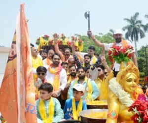 मुजफ्फरनगर : भगवान परशुराम के जन्मोत्सव के अवसर पर आज नगर में भगवान परशुराम जी की भव्य शोभायात्रा निकाली गई। शोभायात्रा नगर के मुख्य मार्गों से होकर निकली। शोभा यात्रा में अनेक प्रसिद्ध बैंड धार्मिक धुनें बजाकर माहौल को श्रद्धामय कर रहे थे। तेज धूप और भयंकर गर्मी के बावजूद भी श्रद्धालुओं में काफी उत्साह दिखाई दे रहा था। इस दौरान अनेक स्थानों पर शोभा यात्रा का फूल बरसाकर जोरदार स्वागत किया गया। सुरक्षा व्यवस्था की दृष्टि से भारी पुलिस बल मौजूद रहा।