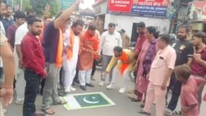 शिवसेना कार्यकर्ताओं ने शिव चौक पर फूंका पाकिस्तान का झंडा