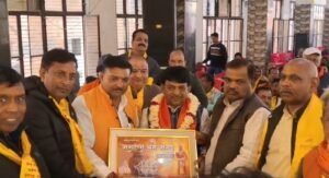मांग पत्र महामंडलेश्वर स्वामी प्रेमानंद जी को हिंदु संघर्ष समिति के पदाधिकारियों द्वारा दिया गया