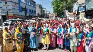 मुज़फ़्फ़रनगर की सड़कों पर आज ‘नारी शक्ति’ का ऐसा सैलाब उमड़ा कि सत्ता के गलियारों तक इसकी गूँज सुनाई दी। शिव चौक से लेकर प्रकाश चौक तक आज सिर्फ महिलाएं ही महिलाएं नज़र आईं। महिला आरक्षण बिल पास न होने पर विशाल शक्ति प्रदर्शन किया गया। हिंद मज़दूर-किसान समिति के बैनर तले जुटी हज़ारों महिलाओं ने पैदल मार्च निकालकर सरकार को साफ़ संदेश दे दिया कि अब देश की आधी आबादी अपने हक के लिए जाग चुकी है।